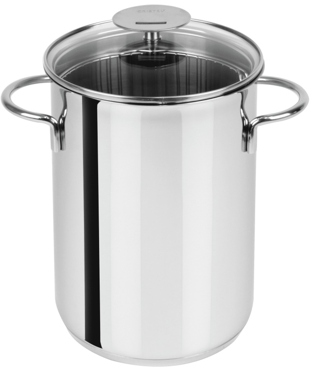 De, der ikke tilbereder asparges i sous vide, men hellere koger dem, bør straks anskaffe sig en aspargesgryde! Ligesom en asparges er aspargesgryden lang og smal. Begrundelsen er, at asparges helst skal tilberedes stående, så den sarte knop stort set kun dampes, og at der skal bruges så lidt vand som muligt for ikke at udludre aspargessmagen. Og den her er lavet af 18/10 rustfrit stål. Den fungerer med alle varmekilder. Den leveres også med et glaslåg og en kurveindsats. 16 cm i diameter og 24,5 cm høj (uden låg). Kan rumme 4 liter. Asparges er lækkert.