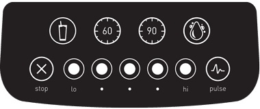 På panelet finder du tydelige knapper til 5 hastigheder plus pulsfunktion, stopknap og fire forudindstillede programmer: et til smoothie, et til rengøring og to tidsindstillede funktioner, som giver dig mulighed for at lade blenderen køre i et stykke tid, mens den passer sig selv.