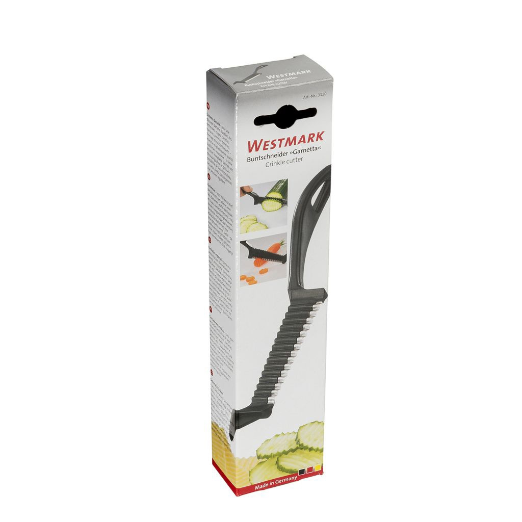 Med den praktiske cutter kan du hurtigt give grøntsager, frugt eller ost et dekorativt bølgesnit. Takket være det skarpe blad i rustfrit stål og de to håndtag er den særdeles nem og sikker at bruge, selv med hårdere grøntsager. Fremstil sunde dekorationer til buffeter eller hjemmelavede grøntsagschips som fingermad til din fest.
