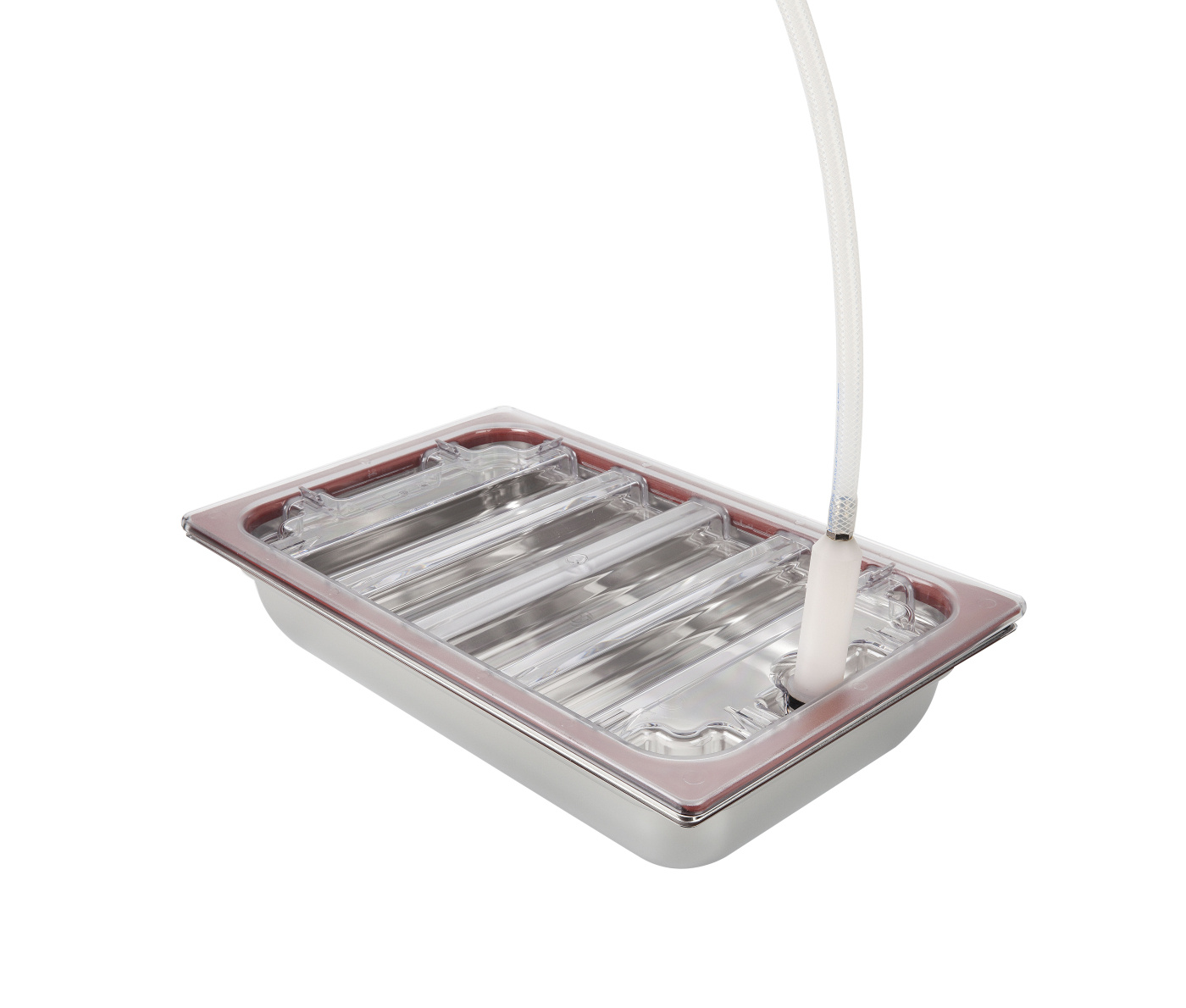Hermetisk låg til Gastrokantin med vakuumventil til ekstern pumpe. Låget giver dig mulighed for at skabe et vakuummiljø, som kan hjælpe med opbevaring og nogle teknikker. Det er en sjov tilgang til at lave vanvittigt bløde kager og lignende. Fås i to størrelser, GN 1/2 og GN 1/1. Kompatibel med ekstern vakuumpumpe. Kantine medfølger ikke.