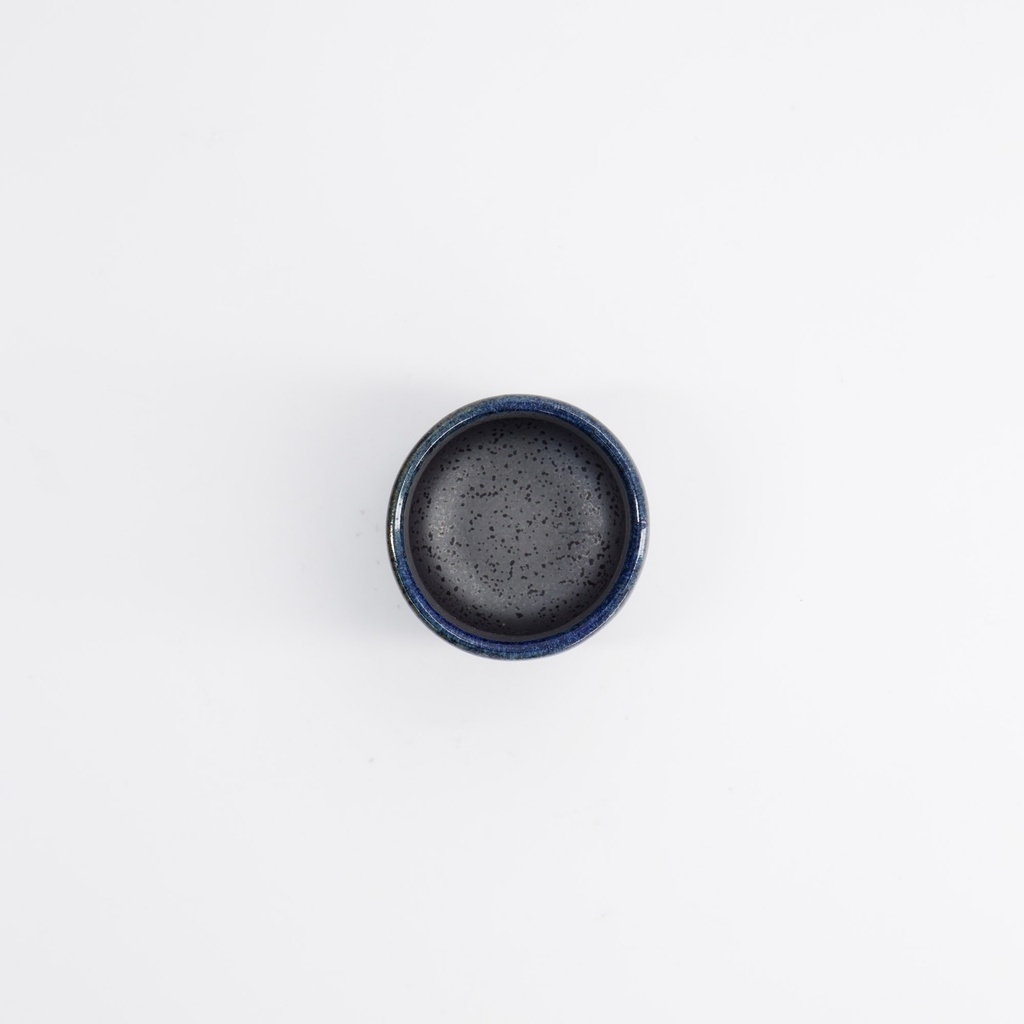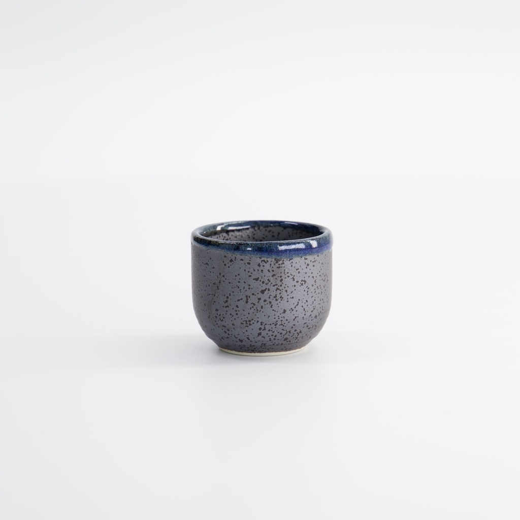 Denne model er lavet af keramik med en dybblå glasur, der går over i en mørkegrå og sortplettet overflade mod foden. Den skifter i tone som stille vand i skumringen, hvor hver vinkel reflekterer lyset forskelligt. Farven er ikke kun dekorativ, den spiller også en praktisk rolle: Blå glasur bruges traditionelt til at fremhæve sake med en klar, næsten sølvhvid glans - som ren junmai eller let afkølet ginjo.