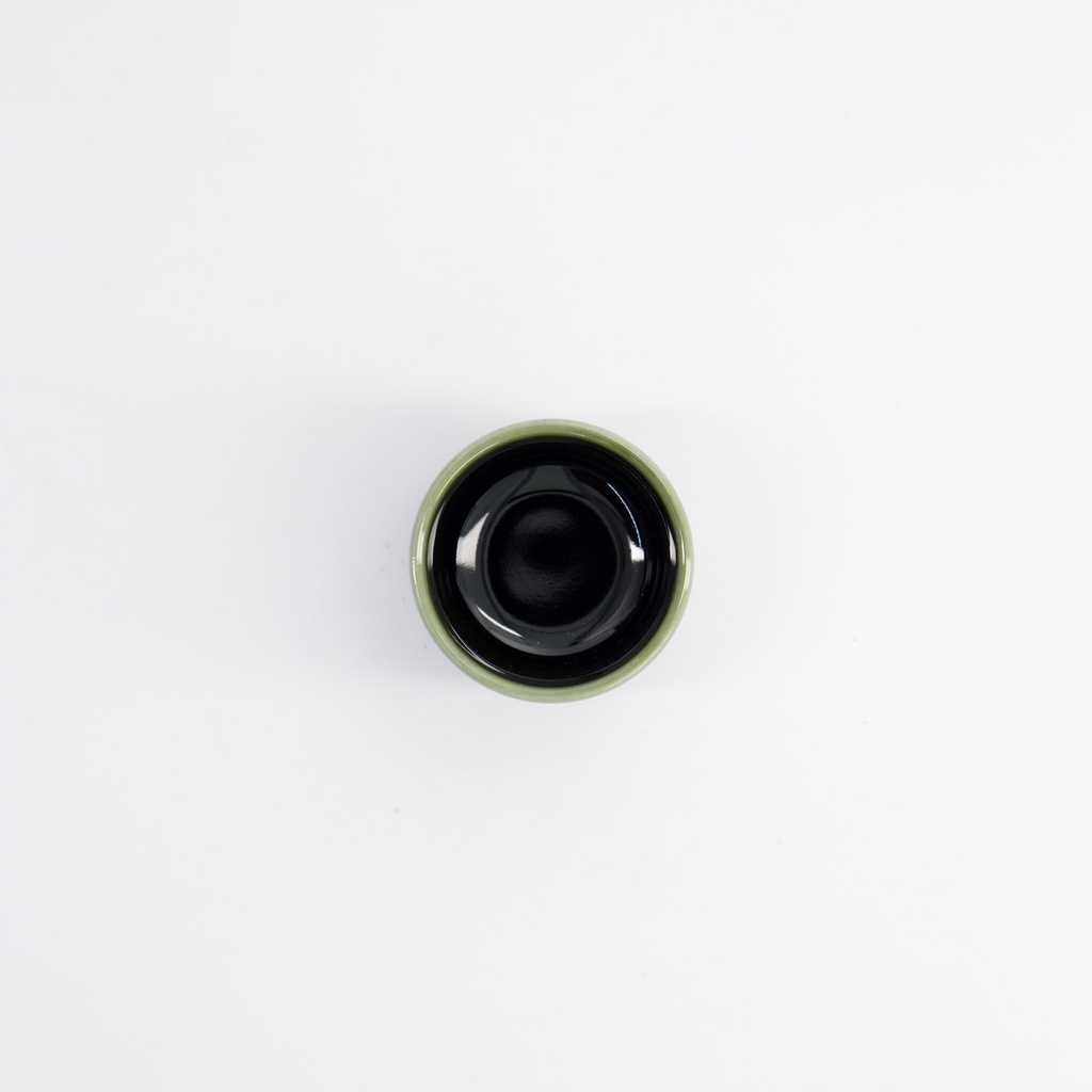 Denne model er lavet af keramik med en dybgrøn glasur og en rustik, let prikket fod, der lader leret skinne igennem. Farven minder om matcha og mørk jade og fremhæver drikkenes varme, når lyset fanger den tynde glasur.