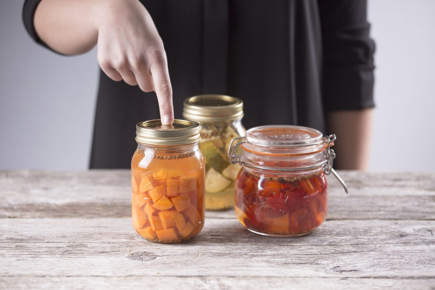 Konservesglas i glas fra Kilner. Med todelt metalskruelåg til effektiv vakuumforsegling.