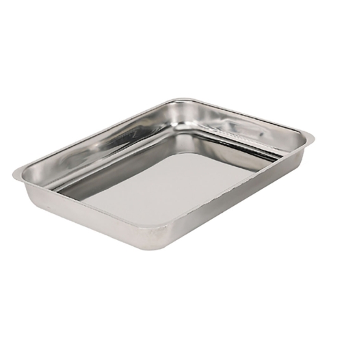 Bakke, trug eller form i rustfrit stål, der måler 35 x 27 x 4,6 cm på indersiden og 37 x 30 x 5,1 cm på ydersiden. Tåler ovn og opvaskemaskine.