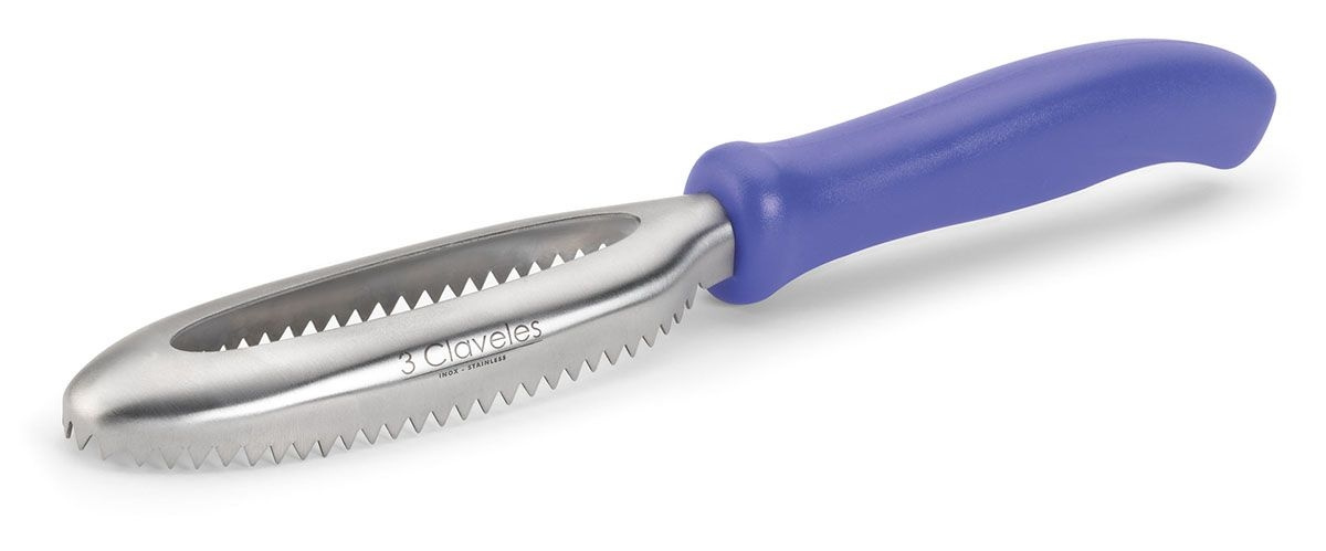 En solid fiskeskæller til professionel brug, udviklet til at gøre et ellers ret rodet moment både hurtigere og mere kontrolleret. Den tandede arbejdsdel i rustfrit stål griber effektivt fat i skællene og fjerner dem uden unødigt at beskadige skindet, hvilket gør den lige velegnet til dagens frokostservering som til større produktionsmængder. Det ergonomiske håndtag i blå polypropylen ligger stabilt i hånden, selv når tempoet er højt og arbejdsbordet er vådt. Med sine 27 cm giver den god rækkevidde og tilstrækkelig kraft til at håndtere alt fra mindre spisefisk til større eksemplarer. Et robust, hygiejnisk og gennemført funktionelt værktøj til køkkener, der tager deres fiskeforberedelse alvorligt.