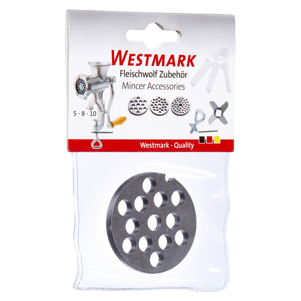 - Ekstra hakkeplade (Ø 8 mm) til Westmark kødhakker 97502260 - lavet af robust stål - til grovskæring af kød, fisk og grøntsager og til fremstilling af hakket kød - nem at rengøre manuelt|.