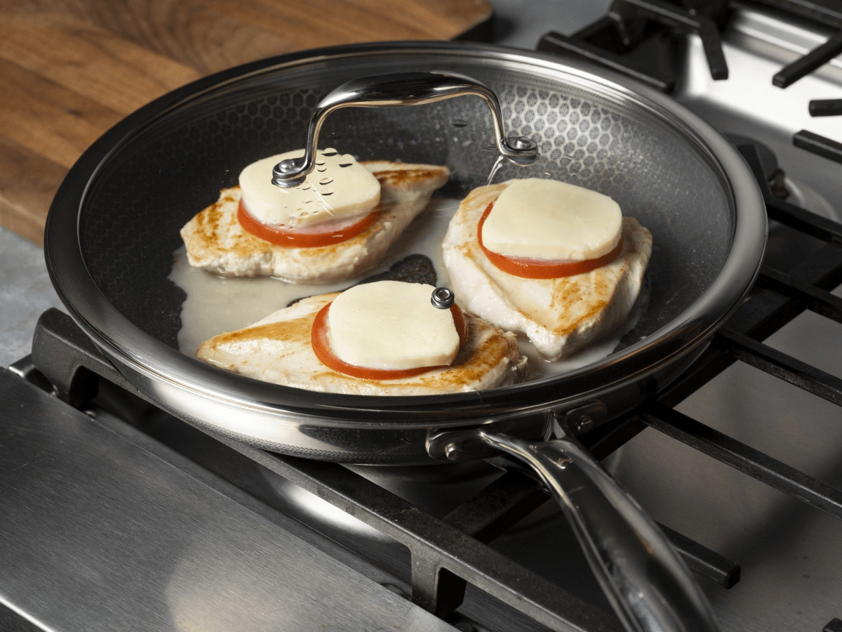 Hexclad Glass Lid 30 cm er det perfekte tilbehør, når du vil forvandle din stegepande eller gryde til et mere alsidigt kogekar - perfekt til saucer, braisering, simring, eller når du vil beskytte maden mod stænk uden at miste varmen.