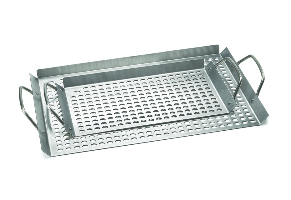 Perfekt til at grille fisk, kød og grøntsager og mindre stykker af råvarer. Maden falder ikke ned under kullene, men får alligevel en lækker grill- og røgsmag. Grillpladerne har kun tre hævede kanter, så det er nemt at bruge en spatel etc. To grillplader i forskellige størrelser. Mål: inkl. håndtag 35×18 cm og 44×28 cm.
