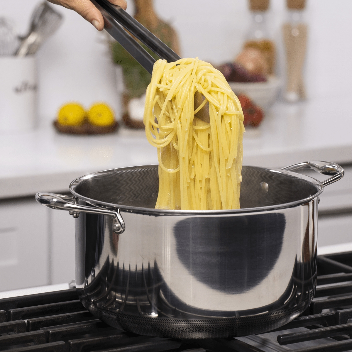 Hexclad Hybridgryde med låg 7,6 L er til dig, der ikke vil nøjes med halve løsninger - når du vil have maksimal volumen, optimal varmekontrol og en gryde, der kan holde til hyppig brug, hårdhændet behandling og metalredskaber. En rigtig arbejdshest i køkkenet.