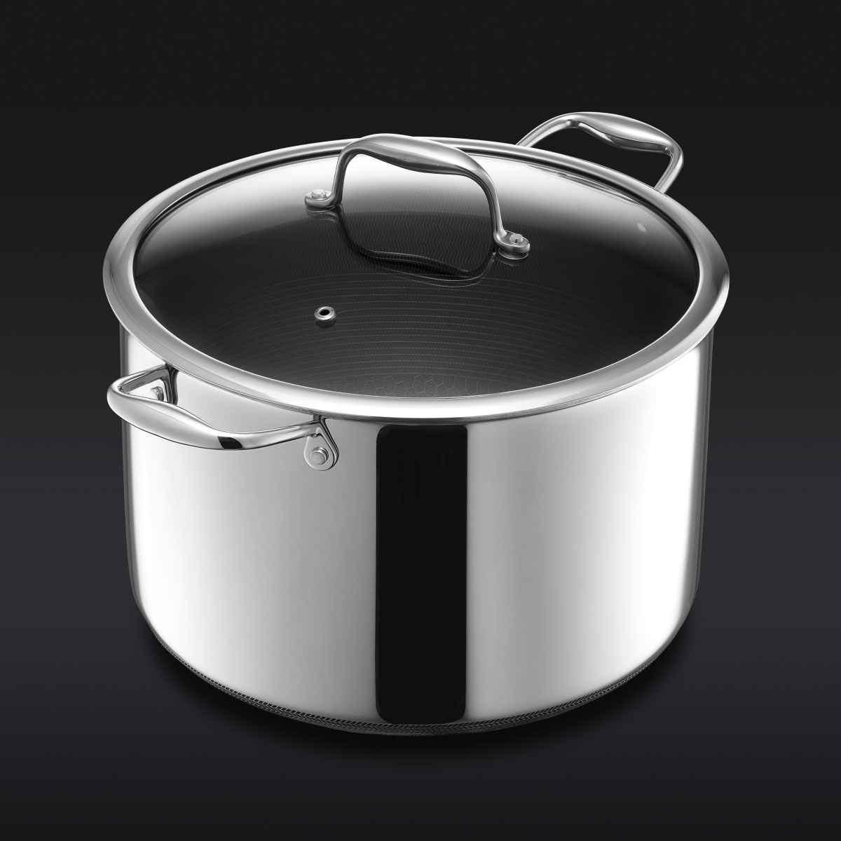 Hexclad Hybrid 9,5 L gryde med låg er en robust, alsidig gryde, der kan håndtere hverdagens hektiske madlavning såvel som gourmetprojektet til weekendmiddagen. En sand trofast arbejder i køkkenet - klar, når du er det.