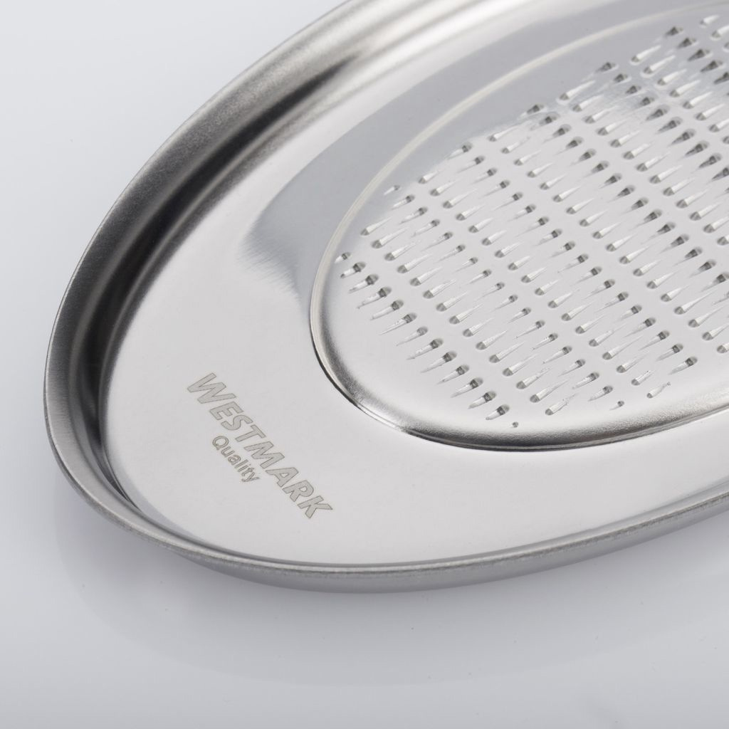 Et praktisk rivejern til ingefær, wasabi, hvidløg, muskatnød, gurkemeje, chokolade, hård ost, citronskal og meget mere. Efter gnidning på den meget skarpe gnideflade opsamles fødevarerne af den hævede kant og kan tilsættes præcist til maden eller drikken. Det ergonomiske design sikrer en behagelig håndtering og gør det lettere at tilberede frisk og sund mad.