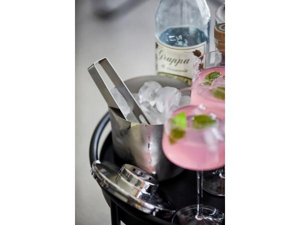 Den danske designduo Mavro//Lefèvre står bag den hyperelegante isspand i rustfrit stål. Som en smeltende isterning går den let firkantede form på bunden over i den cirkulære form på toppen. Den slutter med et låg, der på genial vis skjuler en istang. 1,0 l.