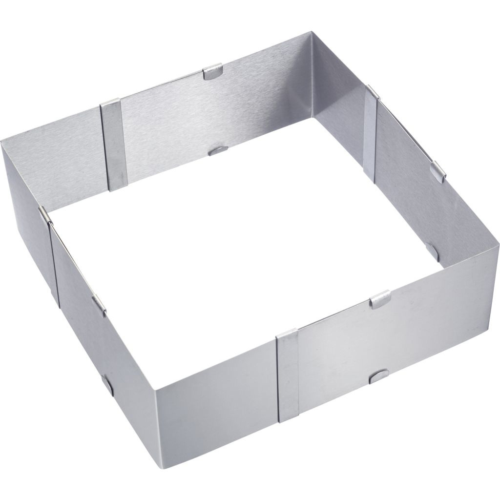 Bageramme, justerbar - til bagning, lagdeling og dekoration - fremstillet af rustfrit stål, frugtsyrebestandig - ekstra høj 80 mm - justerbar fra 155 til 280 mm - fastgør den valgte størrelse med klemmerne - problemfri|