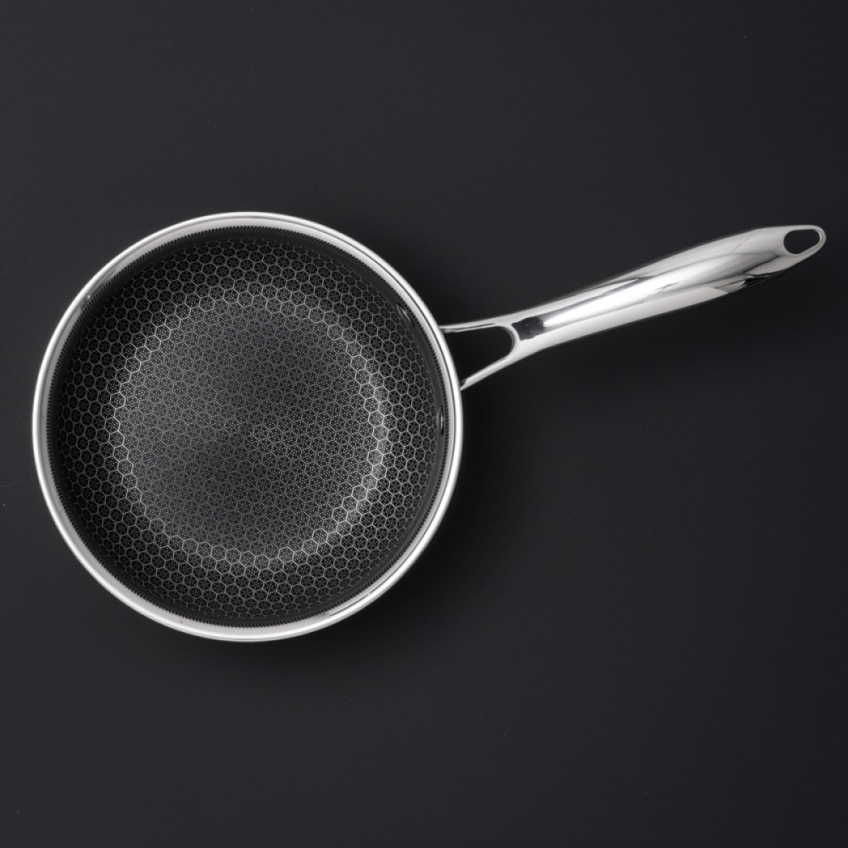 Den patenterede hybridkonstruktion af rustfrit stål og en non-stick-belægning forstærket med diamantstøv kombinerer stålets robusthed, non-stick-pandens rengøringsvenlighed og støbejernets varmelagring - perfekt til både hverdagsmadlavning og mere ambitiøse retter. Den tredobbelte bund sikrer hurtig og jævn varmefordeling, hvilket giver sikrere resultater og mindre risiko for hotspots.