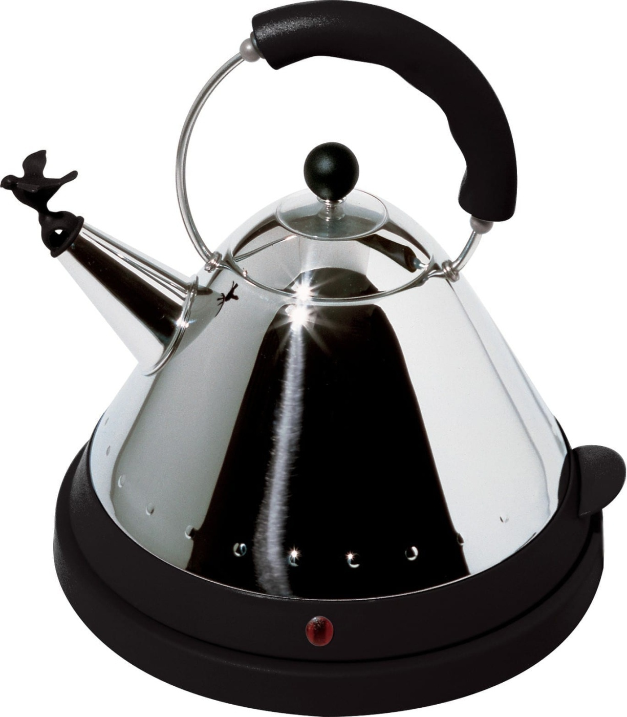 Kedel, Rustfri, stål/sort - Alessi - er en trådløs elkedel i højglans rustfrit stål. Fløjter, når vandet koger.