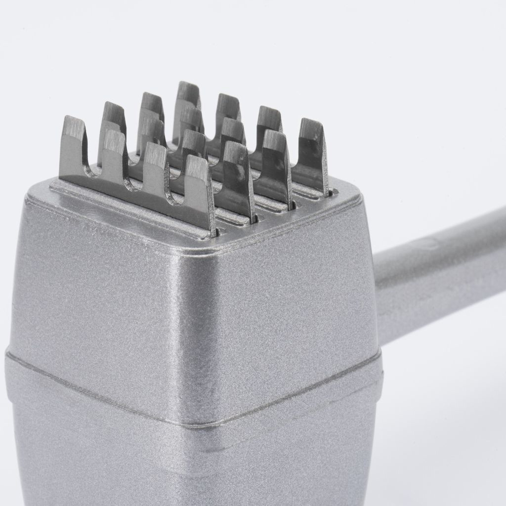 - med 2 slagflader - en groft struktureret til mørning af kød og til at få krydderurter med - en spids med knive|