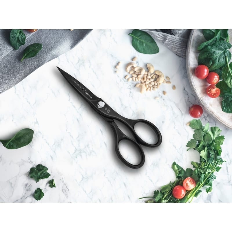 Sort køkkensaks fra 3 Claveles. 20 cm lang.