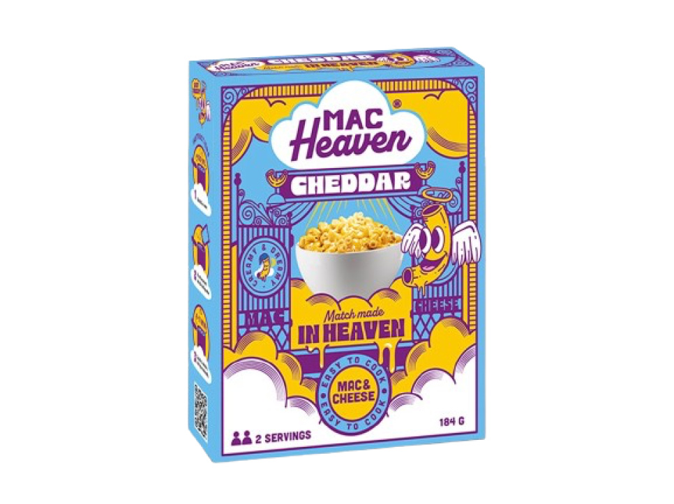 Endelig har vi Mac & Cheese fra Mac Heaven med cheddarsmag. Nem at tilberede og efter vores mening en god erstatning, når man ikke har tid til at lave den fra bunden af. (Til dem, der vil lave deres egen ostesauce, kan man købe natriumcitrat).
