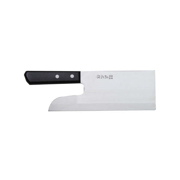 Håndtaget i sort pakkatræ, dobbelt nittet, er udformet for at give stabilitet ved lodrette snit, hvor hele bladets bredde bruges i ét fast, næsten meditativt nedslag. Vægten, den plane balance og friktionen mellem stål og dej gør det muligt at skære soba, udon eller ramen med millimeterpræcision. Resultatet er nudler, der ligner noget, der kommer direkte fra et køkken i Osaka.