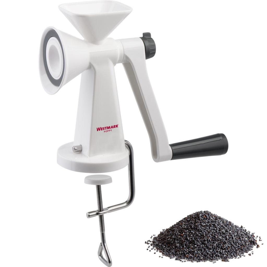 - med keramisk kværn - med trinløs grovhedsindstilling - ideel til korn som valmue, sesam, chiafrø, hørfrø, umodne speltkorn og quinoa - med skrueklemme