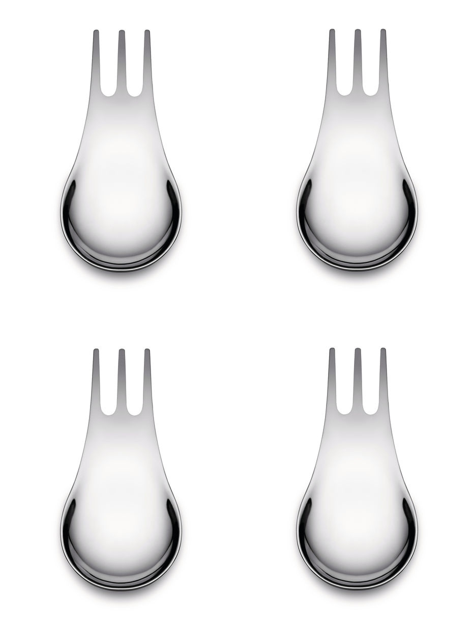Moscardino er det lille bestik med den store idé: en hybrid mellem ske og gaffel, designet af Giulio Iacchetti og Matteo Ragni for Alessi. Her i en 4-pak til mingling, picking, tapas og små serveringer, hvor der er brug for noget mere elegant end engangsbestik - men ikke helt så formelt som klassisk bestik. Fremstillet i rustfrit stål med organiske linjer og et karakteristisk design, som både skiller sig ud og fungerer. Perfekt til aperitiffer, snacks eller små desserter - især hvis du vil servere med stil uden besvær.