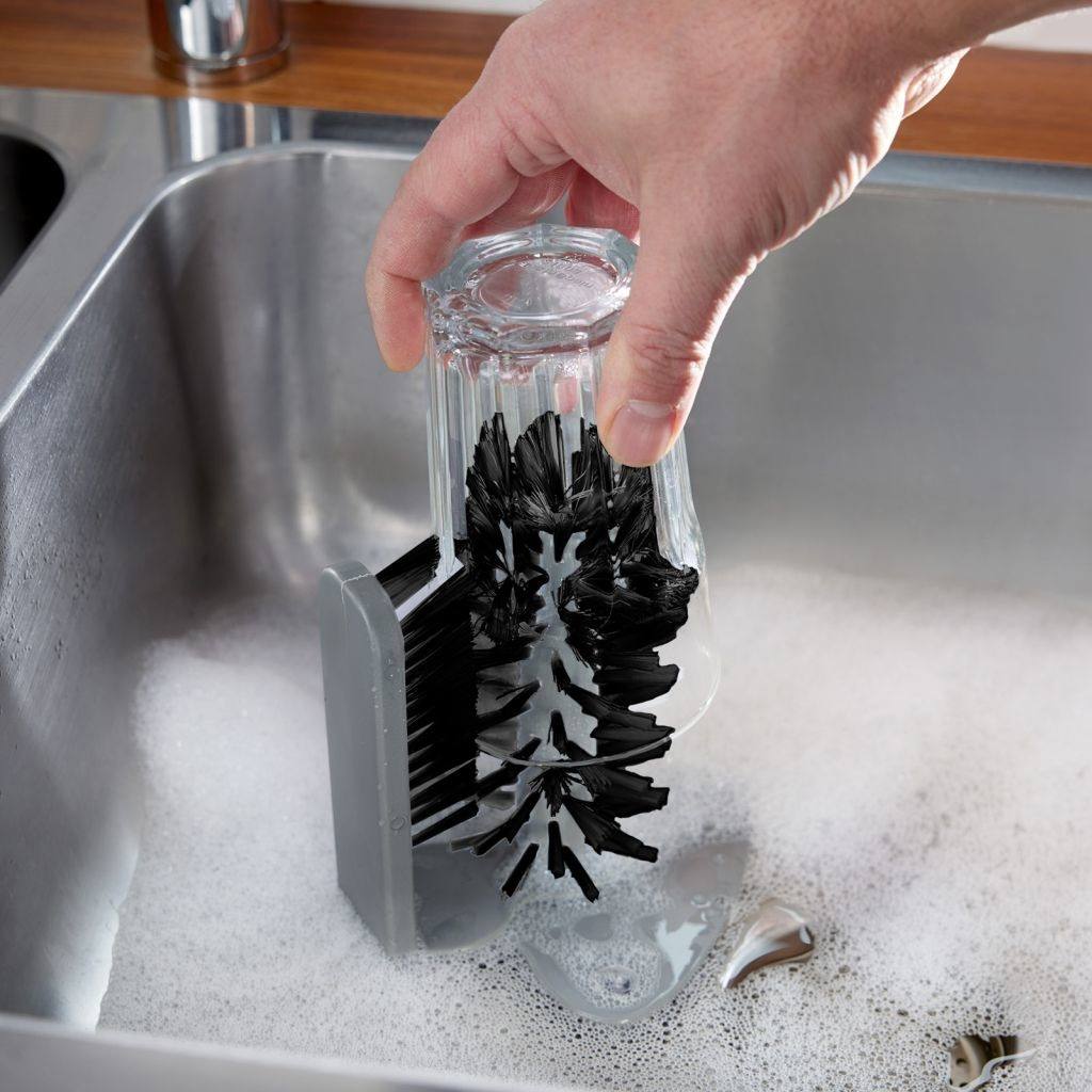 - glasvaskebørste til catering, private barer eller dagligdags køkkenbrug - skridsikker fastgørelse takket være de stærke sugefødder - samtidig skylning indefra og udefra|