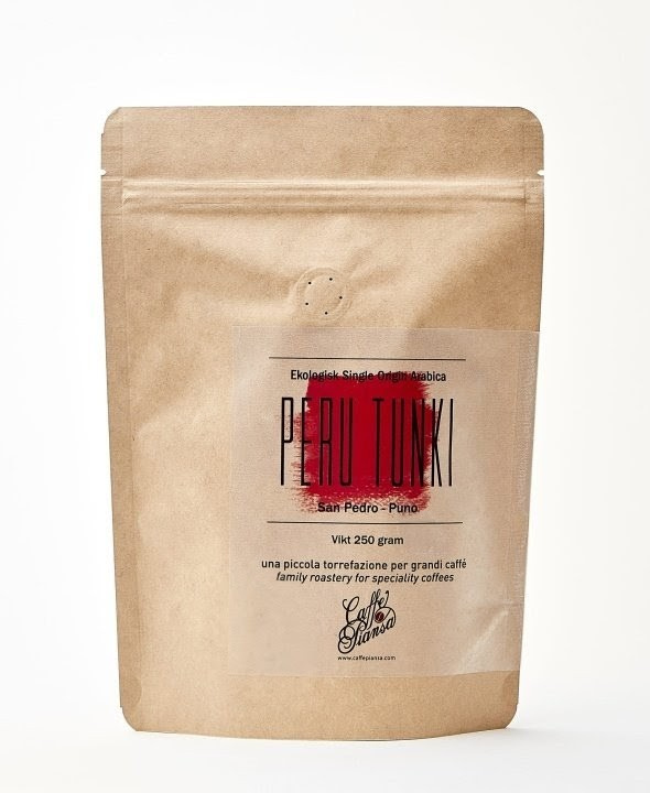Peru Tunki er en single origin-espresso, 100% Arabica med fyldige noter og livlig syrlighed. Økologisk certificeret. Ristet af Caffè Piansa i Firenze.
