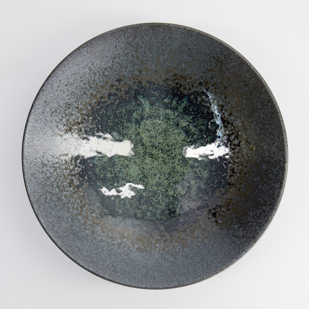 Glasuren er levende og reaktiv, hvilket giver hver skål en unik variation i tone og tekstur, nogle gange mere metallisk, andre gange blødere og grønnere. Den kontrasterende matte overflade mod det glatte indre gør den lige så velegnet til ramen som til donburi, salater eller servering af varme retter i moderne gastronomi.