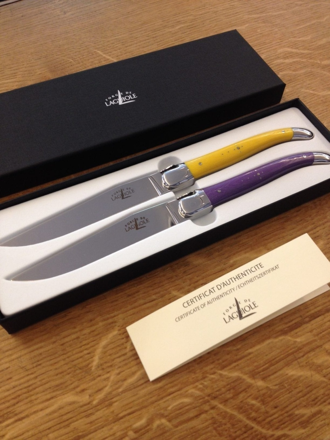 Knivene er pakket i en gaveæske og selvfølgelig med et ægthedscertifikat.