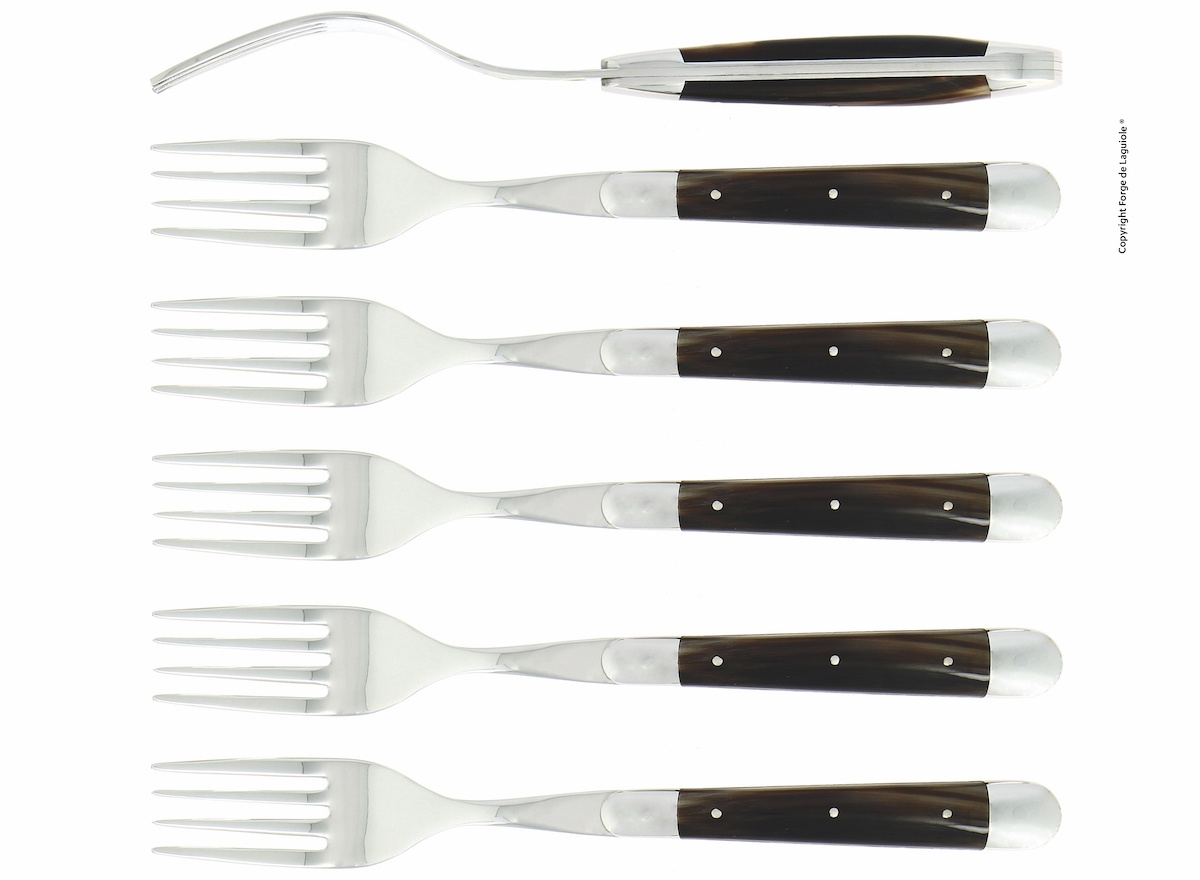Seks gafler, håndtag af mørkt horn, poleret, Tradition - Forge de Laguiole