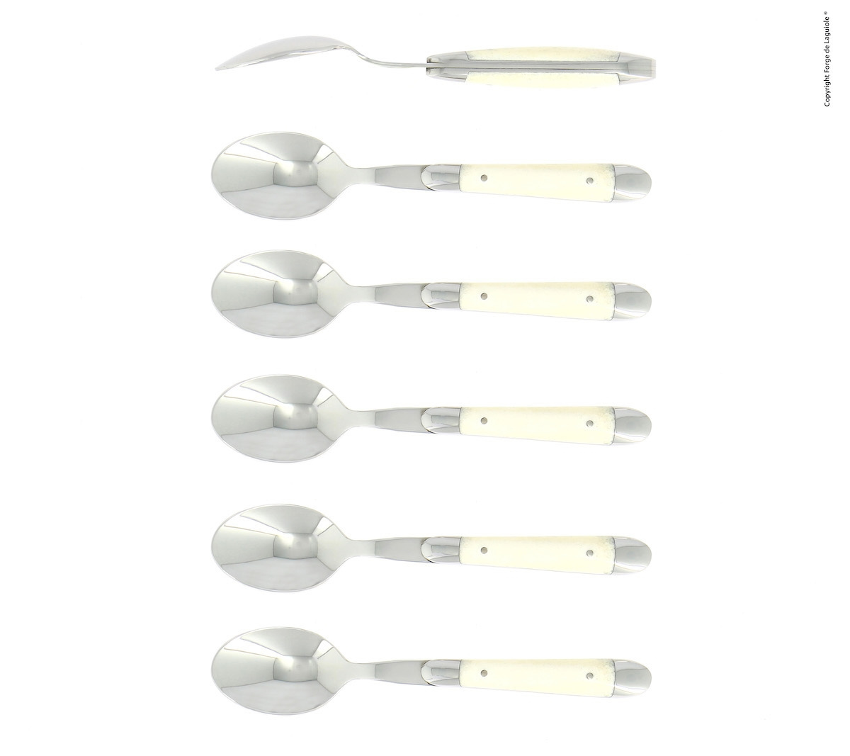 Seks dessertskeer, skaft af ben, poleret, Tradition - Forge de Laguiole