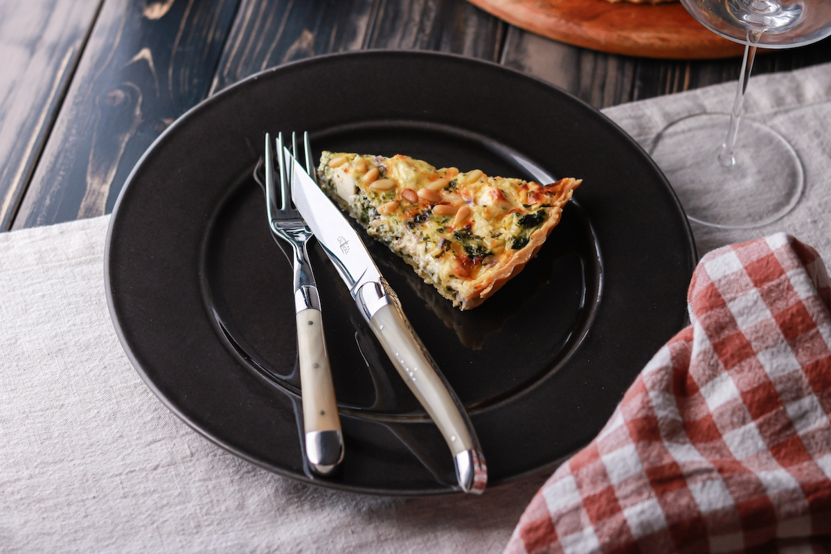 Landsbyen Laguiole i Sydfrankrig har en lang og stolt tradition for knivfremstilling. Siden midten af det 19. århundrede har det ikoniske design af madknive og foldeknive været synonymt med navnet Laguiole. Selv om landsbyen kun har lidt over 1.000 indbyggere, er der stadig nogle få knivmagere tilbage i dag, og traditionen lever i bedste velgående. Da navnet ikke er varemærkebeskyttet og er synonymt med kvalitet og tradition, er det blevet kopieret af mange og bliver det stadig i dag. Mange stykker bestik med variationer af Laguiole-navnet fremstilles faktisk helt andre steder i verden, mens vores sortiment fra Forge de Laguiole stadig fremstilles i hånden i den samme landsby som altid.
