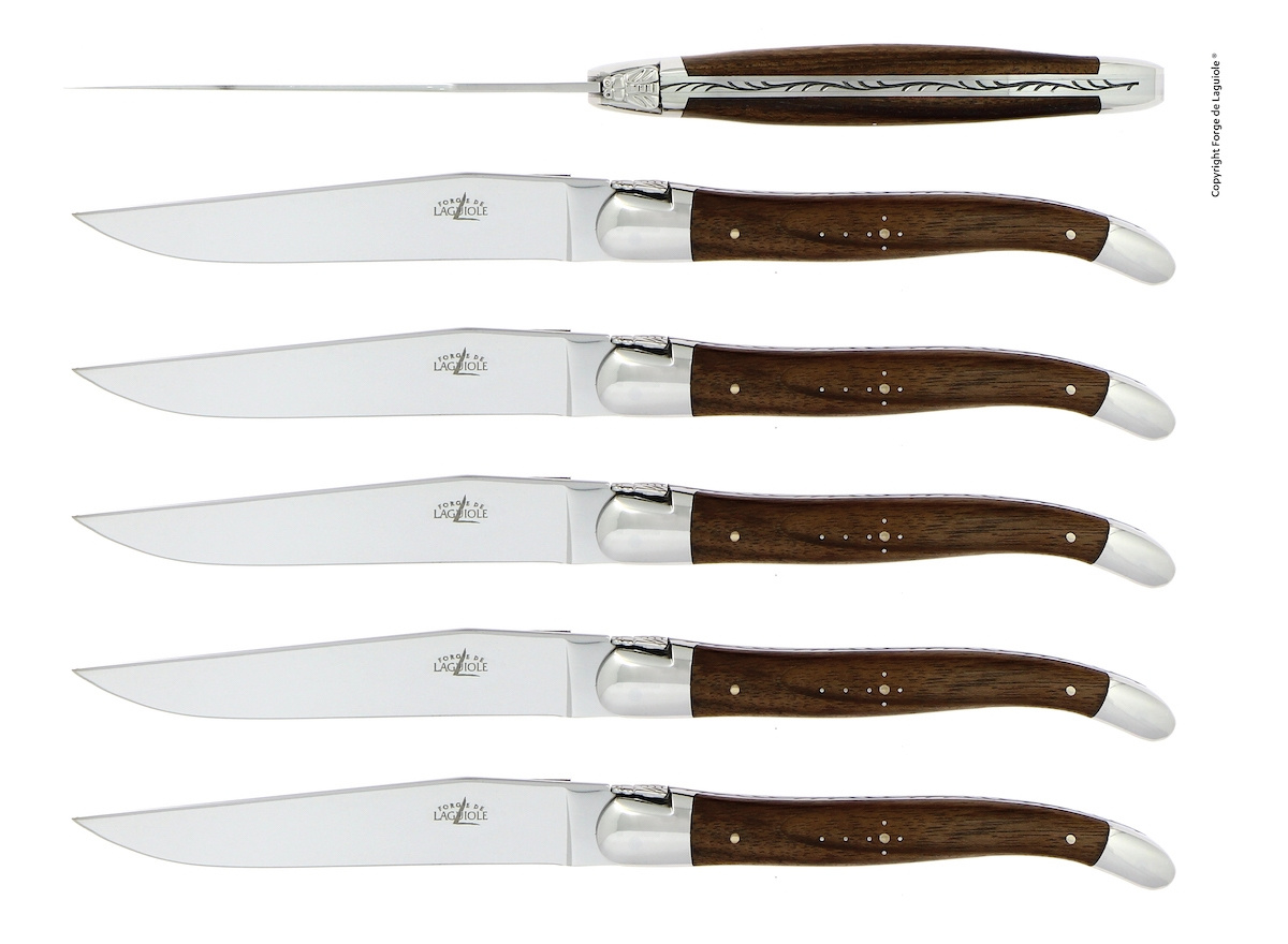 Seks knive, håndtag i valnød, poleret, Tradition - Forge de Laguiole