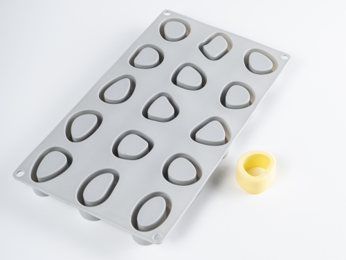 Formen giver femten små ringe i form af knoglemarv og måler 30 x 17 x 2 cm.