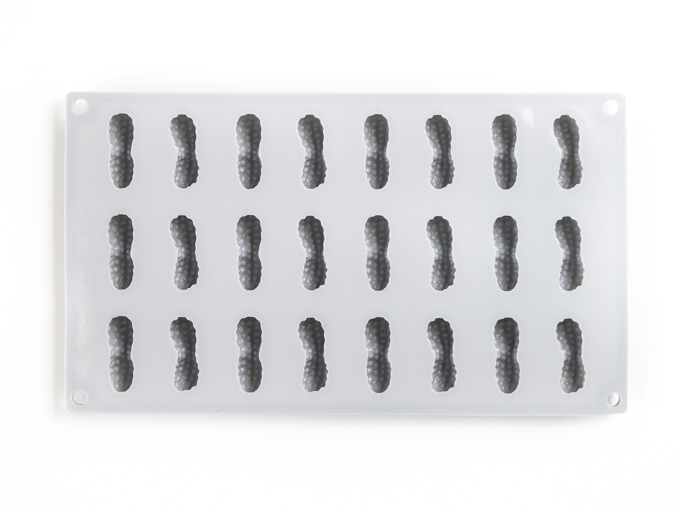 Formen giver 24 uskrællede peanuts og måler 30 x 18 x 3 cm.