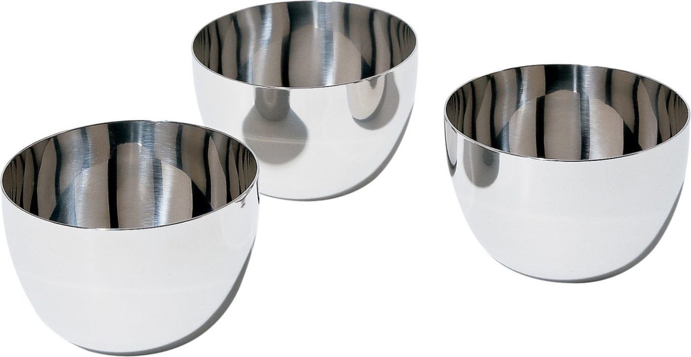 • Sæt med tre skåle i højglans 18/10 stål. Højde 5,5 cm, Ø8,5 cm. Design: Stefano Giovannoni