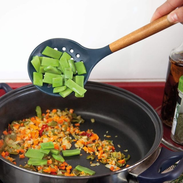 Silikoneoverfladen er skånsom mod dine kogekar og særligt velegnet hvis du bruger non stick belagte gryder og pander. Varmebestandig op til 230°C.