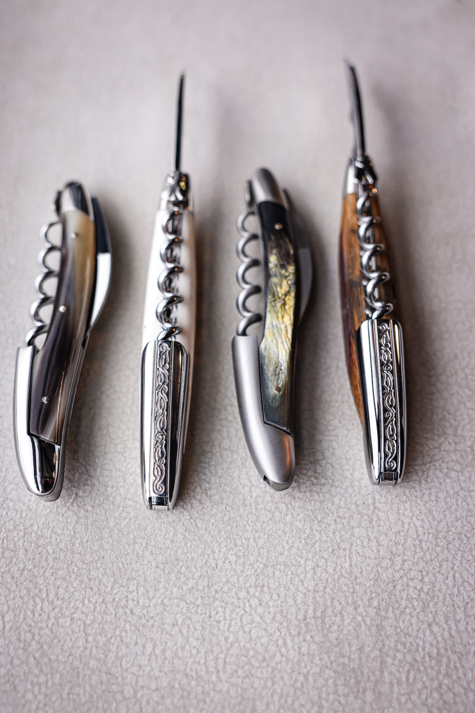Her er der ikke sparet en millimeter på kvaliteten, men hvert stykke bestik, der forlader den lille fabrik, er finjusteret ned til mindste detalje. Bladene, der er lavet af fransk T14 rustfrit stål, smedes på stedet i fabrikken i 1000 grader varme ovne. Håndtagene af træ eller dyr skæres og poleres i hånden af erfarne knivmagere, og bladets pasform er himmelsk. Alt er perfekt! Dette er bestik, som vil være kronen på værket i dit hjem eller din restaurant og en fornøjelse at bruge hver gang!