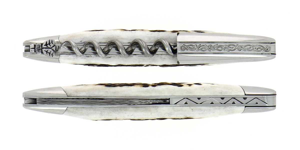 Sommelierkniv af hjortetak, damasceneret med dekoration, Collection - Forge de Laguiole