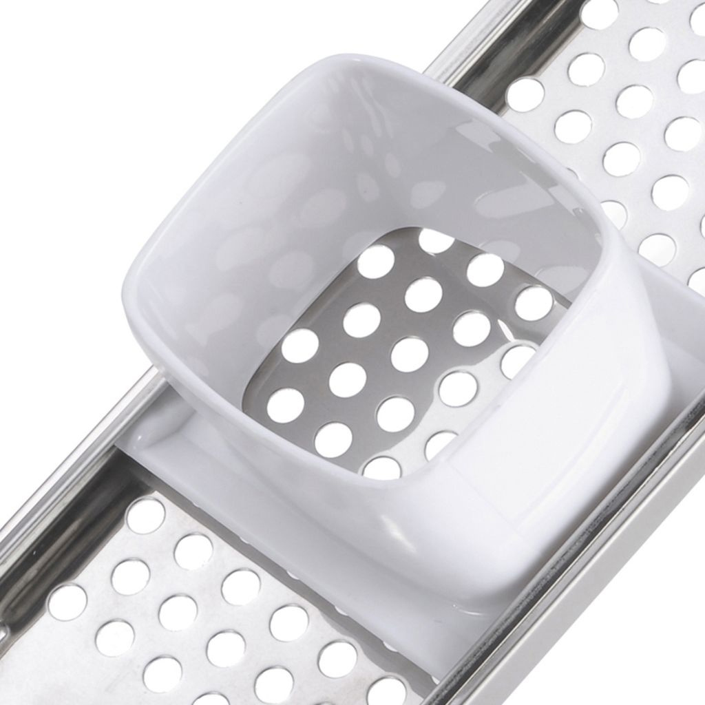 - med rillet sektion i rammen for sikkert greb om gryder - brug: fyld dejboksen med dej og skub den frem og tilbage for at skabe ensartede 'Spaetzle'|