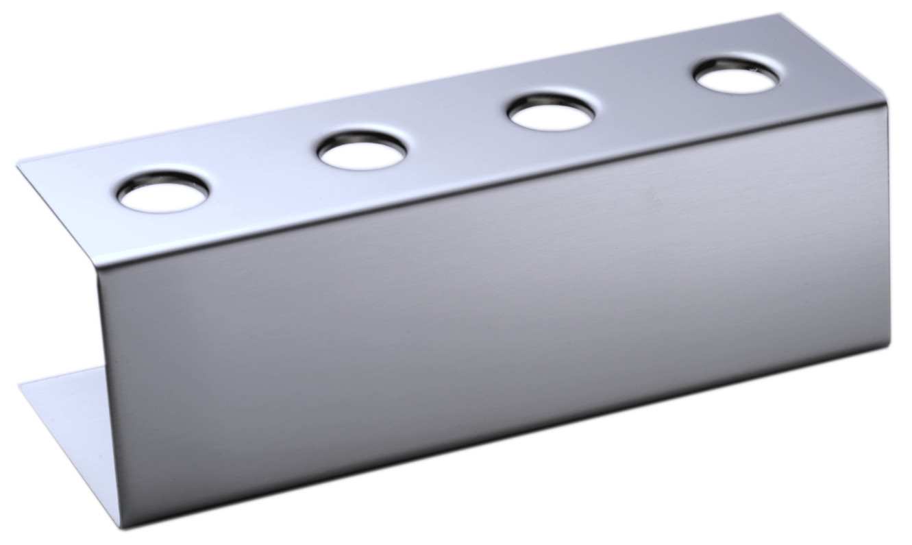 Holder til isvafler som er både robust og praktisk. Holderne er fremstillet i Tyskland i rustfrit stål og designet til at skabe struktur og orden i serveringen. Hullerne på Ø 26 mm holder vaflerne oprejst og let tilgængelige under service, i isdiske, på buffeter eller ved arrangementer.