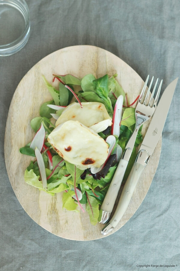 Kniv og gaffel, skaft af lyst horn, poleret, Tradition - Forge de Laguiole