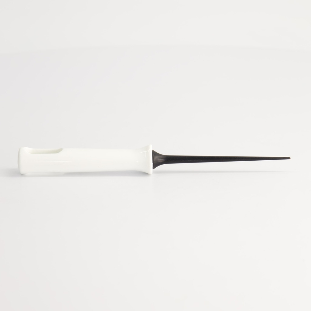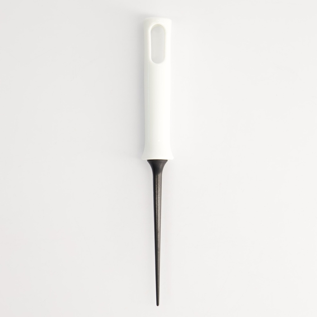 Denne model er lavet af varmebestandig nylon, hvilket gør den skånsom mod non-stick-belagte forme. Spidsen er smal og stiv, så den nemt kan stikkes langs kanten af dejen, mens plasthåndtaget giver et sikkert greb, selv når der arbejdes hurtigt over en varm pande.