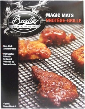 Bradleys Magic Mats (sæt med fire) er non-stick, og de magiske måtter gør, at røget mad hurtigt kan falde ned fra din rygerist. De er lavet af fødevaregodkendt silikone, der er modstandsdygtig over for høje temperaturer, og de kan bruges i hele temperaturområdet på din Bradley-røgovn og tåler opvaskemaskine. De finmaskede måtter lader røgen trænge ind i det, du ryger, uden problemer.