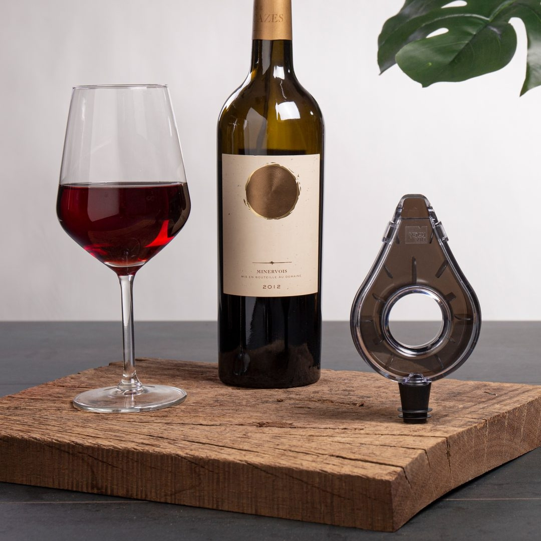 Vinbelufteren bremser strømmen i glasset, så det kan optage ekstra ilt og berige smagen. Skyl vinbelufteren under vandhanen efter brug, og opbevar den om halsen på din vinflaske.