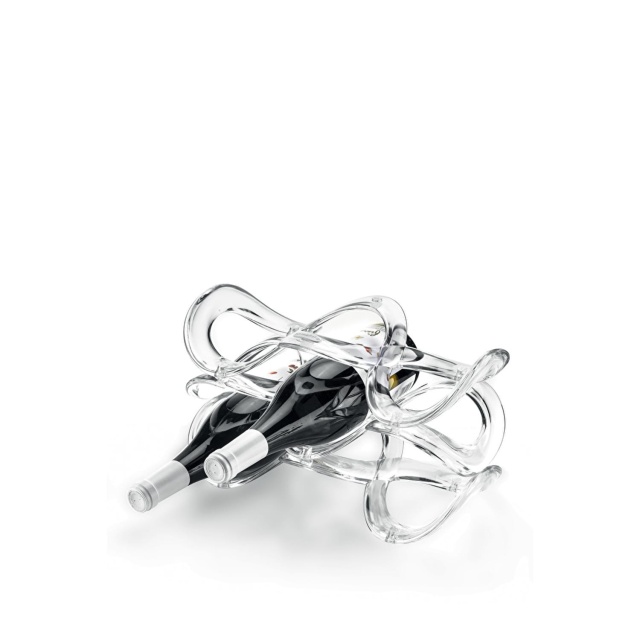 Vinreol i transparent plast fra italienske Guzzini. Kan bygges med flere af samme til dem med højere vinopbevaringsambitioner.