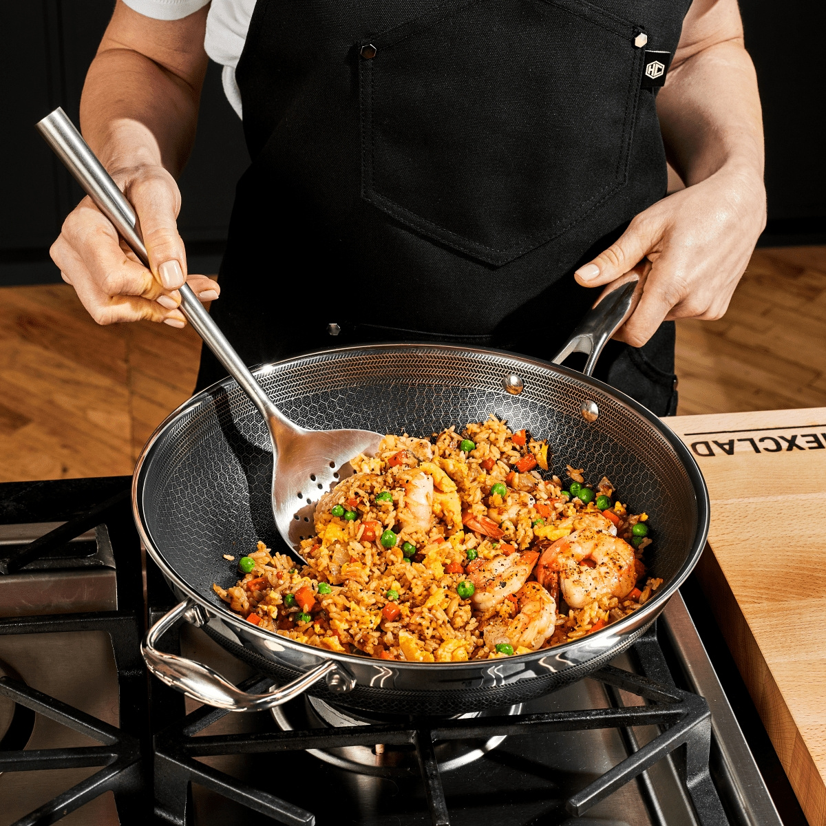 Hexclad Wok 30 cm er til dem, der vil have en robust, fleksibel og alsidig wokpande - klar til hverdagswok, asiatisk stir-fry eller kreative køkkeneventyr med smag, varme og præcision.